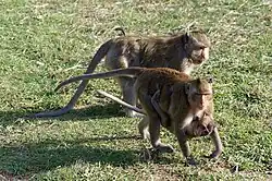 Similarly to baboons, paternal roles and the underlying causes for the evolution of paternal care vary within macaque species. In Celebes crested macaques (Macaca nigra), both male rank and the relationship to the mother predicted male care towards an infant instead of true biological paternity.[30] In both Celebes crested and Barbary macaques (Macaca sylvanus), males adopted a “care-then-mate” strategy, in which care is provided to infants regardless of paternity in order for the male to increase future mating opportunities with the mother.[31][30] In both species, it was observed that male macaques are more likely to initiate care towards and positively interact with the infant in the presence of the mother.[30] In Assam macaques (Macaca assamensis), biological paternity was the most significant predictor of male affiliations with infants, and therefore males biased care towards infants presumed to be their own.[41][30] Observers found that Assamese males were more likely to engage and provide care for infants in the absence of their mothers, reducing the likelihood that care provided to infants will impress the mother and secure access to mating possibilities.[41] In rhesus macaques, males providing protection and greater access to food resulted in higher weight gain for both male and female infants.[37] This had a positive effect on infant survival and was significant in the first year of infancy, when the risk of infanticide is the highest.[30][37]