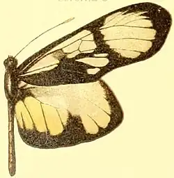 It is very similar to Thyridia psidii and Methona confusa, especially in the female.