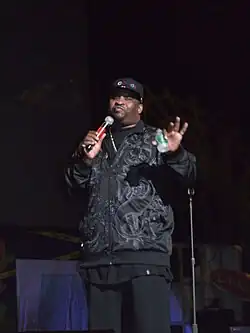 O'Neal cited George Carlin and Richard Pryor as his favorite comedians.[2][36] His comedy has been described as conversational.[5][37] His routines were characterized by an off-the-cuff approach and frequently adult themes.[38] He was direct when presenting his views, particularly on race and gender roles.[39][40] He was also a provocateur who often incited audience members to heckle or even leave the club. Gregg "Opie" Hughes stated that he had seen O'Neal "give people money to leave".[41]
