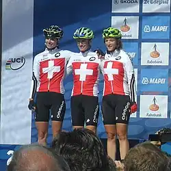 ![]() Patricia Schwager (center) at the 2012 UCI Road World Championships | |