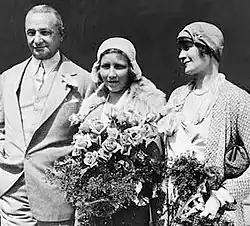 ![]() Patricia Ziegfeld (center) with her parents in 1930 | |