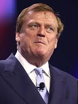 In 2020, Byrne promoted President Donald Trump's claim that he actually won the U.S. presidential election; Trump, the Republican incumbent, was defeated by Democratic candidate Joe Biden. Along with Steve Bannon and Lin Wood, among others, Byrne was a leading figure in an assortment of allies gathered by Trump to amplify his conspiracy theory claims during his months-long effort to subvert the election results and cling to power.[58][59][60][61]