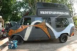 In the Summer of 2009, Skoff purchased a beat-up van and transformed it into a studio on wheels. He then painted the entire outside, spray painted SkoffPaintings.com down the side and added a loft studio to the top. He plans to turn the van into his rolling studio and travel across the country in it producing free art hunts in cities across the United States.[6] Skoff also accepts donations to fund his trip and will be putting the names of his sponsors along the art van.