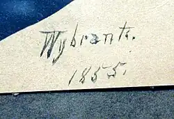 Several American art dealers and commentators have incorrectly identified him as having been a Native American. A typical Wybrant painting is a portrait, a profile view done in watercolour, signed "Wybrant Artist" and dated in numerals. Little information has been published about Wybrant on the internet; what exists tends to be spurious copy devised to promote sales of the portraits. His paintings have value for those interested in 19th century fashion.[2][3]