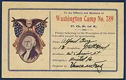 - ^ Proceedings of the National Camp Patriotic Order Sons of America, Twenty-first Regular Sessions, Held at Buffalo, New York, September 24 and 25, 1901 (Philadelphia: Camp News, 1901), p. 82.