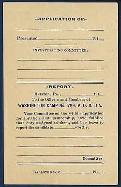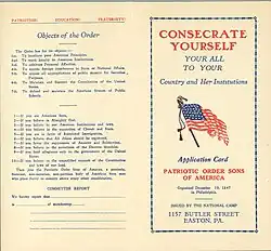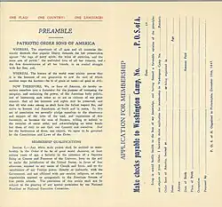 - ^ State Camp of Pennsylvania and Subordinate Camp Constitution Preceded by the National Camp Constitution and General Laws of the Patriotic Order of Sons of America (Philadelphia: P.O.S.A, 1945, pp. 5-7.