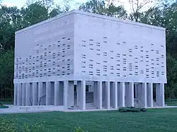 Patriots Peace Memorial is a monument in eastern Louisville, Kentucky near the banks of the Ohio River. In 2000, County Judge-Executive Rebecca Jackson appointed a committee of local retired and former military personnel, as well as family members of local United States military personnel, to visualize, conceive, fund and erect a suitable memorial honoring fallen patriots from all the military services. With the generous financial support of David and Betty Jones, as well as numerous local foundations, corporations, veterans' organizations, families, friends and patriotic citizens, the dream became a reality on Veterans Day, November 11, 2002.
