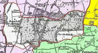 Patshull is a former civil parish, now in the parish of Pattingham and Patshull, in the South Staffordshire district, in the county of Staffordshire, England. It is 7 miles west of Wolverhampton and 7½ miles east of Bridgnorth. According to the 2011 census it had a population of 212.[1] The parish consisted of Patshull, Burnhill Green and, along its eastern boundary, Westbeech (old name Westbach). It formerly contained several farmhouses and small cottages,[2] but Burnhill Green is the main hamlet.