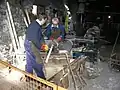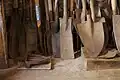The mill itself has several separate areas of work: an area where the furnace and tilt hammer heat and forge the blades of the spades; another area for finishing, which includes the manufacture of shafts and handles from wood, fitting the blades to the shafts, as well as painting and labelling the spades.[6]