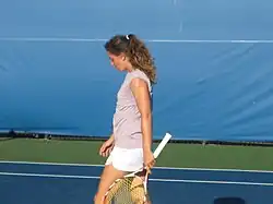 Patty Schnyder (born 14 December 1978)[1] is a Swiss retired tennis player. A former top 10 player in singles, she twice defeated a reigning world No. 1 player in her career: Martina Hingis at the 1998 Grand Slam Cup (by retirement) and Jennifer Capriati at the Family Circle Cup in 2002. In addition, she has notable wins over such former No. 1 players as Lindsay Davenport, Serena Williams, Arantxa Sánchez Vicario, Steffi Graf, Kim Clijsters, Justine Henin, Amélie Mauresmo, Maria Sharapova, Jelena Janković, Ana Ivanovic, and Caroline Wozniacki.