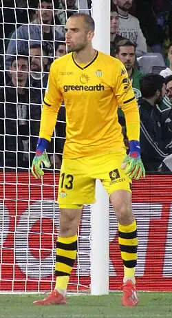 López's debut in La Liga occurred on 1 February 2015, after starter Kiko Casilla was sent off in the 40th minute of the fixture at Sevilla for handling Iago Aspas' shot outside of the penalty area, and he conceded once in an eventual 3–2 defeat.[13] After the latter's departure to Real Madrid in the summer, he became the starter.[14]