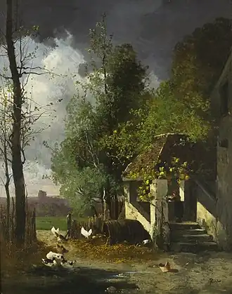 His artistic legacy mixes the baroque tradition of Dutch still lifes, the simplicity of Jean-Baptiste-Siméon Chardin (1699–1779), rediscovered at the time by the artistic community, and the energy of painters Realist painting after the biennial Salon of 1850. Thereafter, Paul Biva became sensitive to Impressionist movement of the 1870s.[6]