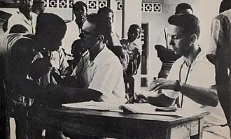 Carlson became known as the "Congo Martyr" and was featured on the covers of both Time and Life magazines. His tombstone, at Karawa, bears the inscription "Greater love has no man than this, that a man lay down his life for his friends."— John 15:13[2] Shortly after Carlson's death, Lois and others formed the Paul Carlson Medical Program with the goal of raising money to support the Loko hospital. They expanded with agricultural programs to teach nutrition, agronomy, and microenterprise.[10] In 2000, the Paul Carlson Medical Program was revitalized and now operates under the name the Paul Carlson Partnership. The Paul Carlson Partnership[11] is a Chicago-based nonprofit organization with a mission that focuses on investing in health care, economic development, and education in Central Africa.[12]