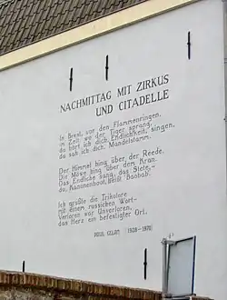 - ^ Celan, Paul, and Axel Gellhaus. Paul Antschel/Paul Celan in Czernowitz, Deutsche Schillergesellschafy 2001 ISBN 978-3-933679-40-6