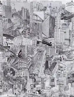 In 1919 Citroen began studying at the Bauhaus, where he started taking lessons from Paul Klee and Wassily Kandinsky (part of Der Blaue Reiter) and Johannes Itten, who became one of his biggest influences. Around this time, he started Metropolis (1923), which became his best-known piece. Metropolis is held at the Print Room of Leiden University Libraries. A digital version is available via Leiden's Digital Collections.[3] Metropolis influenced Fritz Lang to make his classic film Metropolis. Between 1929 and 1935, Citroen made many photographs, clearly influenced by his work with Blumenfeld.