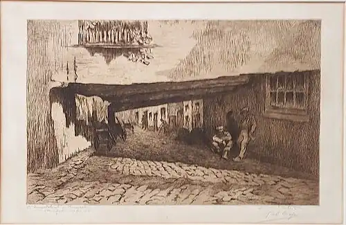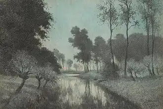 At the fourth salon held by “L’Estampe” (1910), he exhibited several etchings and monotypes that were well received. He was an active member of the "Cercle d'art d'Uccle"; helping to organize their annual exhibitions. His other memberships covered a wide range of activities, from an amateur choir to the pigeon fanciers.