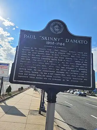 - ^ "500 Club Historical Marker and Skinny D'Amato". September 2010.