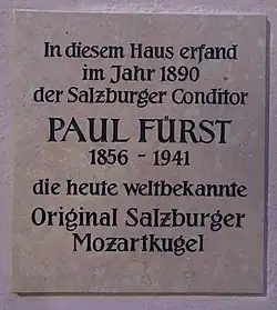 Paul Fürst (born 12 August 1856 in Sierning, Austria, died 14 February 1941 in Salzburg) was an Austrian confectioner and the inventor of the "Original Salzburger Mozartkugel".[1]