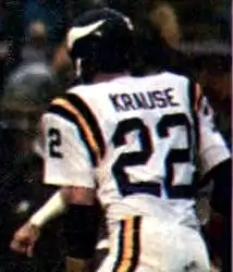 Krause was often referred to as the Vikings "center fielder" because of his success as an interscholastic baseball player and his ability to catch interceptions.[9][10]