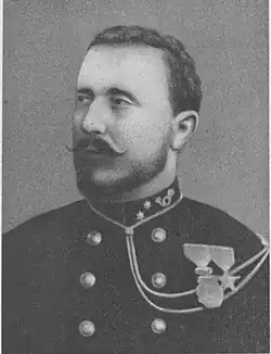 Paul-Amédée Le Marinel was the son of Amédée Le Marinel, a French soldier from Normandy who had joined the Belgian revolutionaries in 1830, and then served for eighteen years in the Belgian army. In 1858 Amédée emigrated to the U.S. and started a farm in Long Grove, Iowa where his two sons, Paul and George, were born. In 1868 the family returned to Belgium, and in 1876 Paul Le Marinel enrolled in the military school, graduating in 1878 with the rank of Sergeant. He served in the 13th Line Regiment for a year, then for a few years in the riflemen's regiment.[1] His brother Georges Le Marinel also joined the army and served in the Congo.[2]