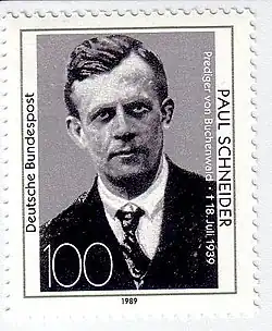 Paul Robert Schneider (August 29, 1897 – July 18, 1939) was a German pastor of the Evangelical Church of the old-Prussian Union who was the first Protestant minister to be martyred by the Nazis.[1][2] He was murdered with a strophanthin injection at the concentration camp of Buchenwald.[3]