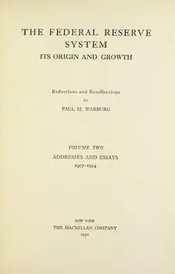 - ^ Paul Warburg, The Federal Reserve System: Its Origins and Growth—Reflections and Recollections, vol. 1, New York: Macmillan, 1930, pp. 20-21.