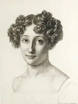 In the late 18th century women were generally prevented from attaining an education in art academies in France, particularly if they did not have money and connections.[7] Auzou attended Jean-Baptiste Regnault's atelier[2] in 1802 along with Sophie Guillemard, Eugénie Delaporte, Caroline Derigny and Henriette Lorimier.[8] She was influenced by another woman artist, Marguerite Gérard,[9] and by Jean-Auguste-Dominique Ingres.[10]