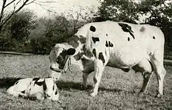 From 1910 to 1913, Miss Wayne freely grazed the White House lawn.[4] She was the most recent presidential cow to live at the White House and was considered as much a Taft family pet as she was livestock. When Taft left office, she was shipped to Wisconsin.[5] Her Bovine Blue Book number was 115,580. The origin of the name "Pauline Wayne" is unknown; however, the New York Times noted that she was "a member of the great Wayne family of Holsteins."[4]