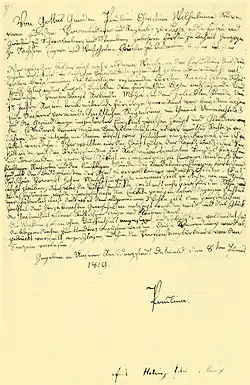 Pauline held from 1818 until her death in 1820 the office of Mayor of Lemgo, overlapping the period she ruled Lippe. After the Napoleonic Wars, the city was heavily indebted. When mayor Overbeck died in 1817, no suitable new mayor could be found, and the magistrates and citizens decided on 4 January 1818 to ask Pauline ... to take a period the police and financial posts of the government of the city under her immediate direction for a period of six years ....[7] Pauline answered on the same day and, contrary to everyone's expectations, she accepted the invitation. Locally, she was represented by the talented and dedicated lawyer Kestner, acting as Commissioner. She managed to improve the financial and social situation by taking some unpopular measures, but always with respect for the parliamentary rules of the city. Like in Detmold in 1801, she founded a workhouse for the poor and a service club under her own direction.[8]