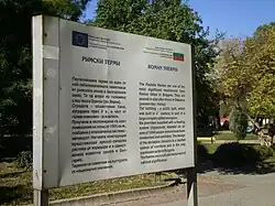 The name is Thracian and means "spring city", referring to the hot springs there. The earliest preserved mention of the city is in a list of 135 Roman Municipia in Thrace from 106 C.E. which list included the settlements on the site of today's Sofia, Plovdiv and Stara Zagora. From the first name of Emperor Trajan Pautalia received its first name — Ulpia Pautalia.[2][3] During the regnum of the Roman Empire Pautalia minted his own coins, from the time of emperors Antoninus Pius to Caracalla,[4][5] and possibly into the reign of Elagabalus.[6]