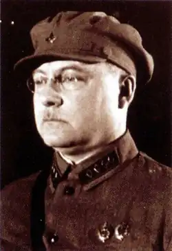 Bulanov was born in 1895 in the village of Insar, Penza Governorate, the son of a forester of Russian ethnicity.[1] In 1916, after graduating from the Penza Land Surveying School, he was drafted into the Russian Imperial Army; during the First World War he served in a reserve regiment stationed in Saratov, from August 1916 to January 1917. In 1917, while in Moscow in search of work, he met Mikhail Frinovsky, who helped him get a job in the office of one of the Red Guard detachments. He did not participate in the Civil War.