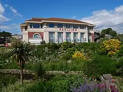 In the early 1930s, the Pavilion was rebuilt to accommodate theatrical productions as well as orchestras. It re-opened with a production of The White Horse Inn on 7 July 1934.[7] Several alterations were undertaken in the 1950s, including the addition of two storeys to either side of the main entrance.[5] In 1975, the Oasis Bar was added as a western extension of the hall. This proved to be unpopular, and was demolished in 2007 when the theatre underwent a £12 million restoration programme.[8]