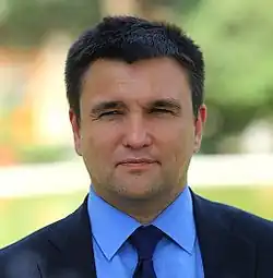 Pavlo Anatoliiovych Klimkin (Ukrainian: Павло Анатолійович Клімкін; born 25 December 1967) is a Ukrainian diplomat who from 19 June 2014 until 29 August 2019 served as Minister of Foreign Affairs of Ukraine.[2] A Moscow-educated physicist,[3][1] he has worked in the Ukrainian Foreign Ministry since 1993, with positions including director of the department for the European Union, as well as deputy foreign minister in the First Azarov Government,[4][5] where he played a central role in negotiating the Ukraine–European Union Association Agreement.[5][6]