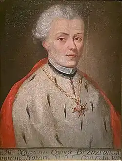 Paweł Ksawery Brzostowski (1739-1827) was a Polish noble, writer, publicist, and Catholic priest. He held the office of Great Lithuanian Writer since 1762, Canon of Vilnius from 1755 to 1773, and the Great Lithuanian Referendary from 1774 to 1787.