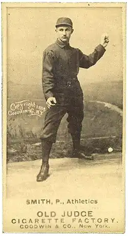 (1888) Phenomenal Smith, Philadelphia Athletics, Old Judge Tobacco card. Smith managed Pawtucket in 1896 and 1897 and was the namesake of the "Phenoms."