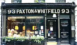 Paxton & Whitfield are one of the oldest cheesemongers in England. Their main shop is located at 93 Jermyn Street, London, with branches in Chelsea, Canterbury, and Bath.[1]