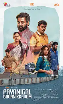 Payanigal Gavanikkavum (transl. Passengers take note) is a 2022 Indian Tamil-language comedy drama film directed by S. P. Shakthivel and produced by All In Pictures.[1] The film stars Vidharth and Karunakaran with a supporting cast including Lakshmi Priyaa Chandramouli, Masoom Shankar, and Prem Kumar.[2] The film's music is composed by Shanmanth Nag, with cinematography handled by S. Pandikumar and editing done by R. S. Sathishkumar. The film is a remake of the 2019 Malayalam film Vikruthi written by Ajeesh P. Thomas and directed by Emcy Joseph.[3] The film premiered on Aha on 29 April 2022.[4]