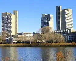 Peabody Terrace, on the north bank of the Charles River in Cambridge, Massachusetts, is a Harvard University housing complex primarily serving graduate students, particularly married students and their families. Designed in the brutalist style[1] and constructed in 1964, the complex includes perimeter buildings standing at three to seven stories, and three interior 22-story towers.[2]