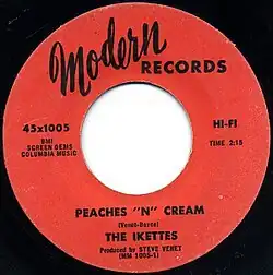 "Peaches 'N' Cream" is a song written by Steve Venet and Tommy Boyce, originally released by The Ikettes on Modern Records in 1965. It became the first Billboard Top 40 single for The Ikettes since their debut "I'm Blue (The Gong-Gong Song)" in 1961.[2]
