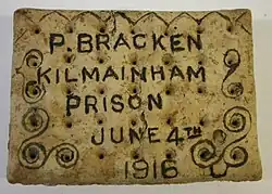 Bracken was imprisoned in Kilmainham Gaol following the Rising, and the National Museum of Ireland hold a prison biscuit he inscribed with his name and the date, 4 June 1916.[5]