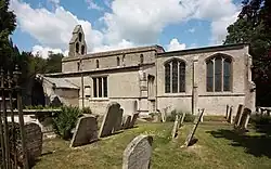 Pega (died c. 719), the sister of St Guthlac of Crowland, had her cell sited here.[2] The privately owned, Grade-II-listed St Pega's Hermitage is possibly on the site. The parish church is uniquely dedicated to St Pega and the name of the village is derived from "Pega's church".[3] The church is a Grade I listed building and has a fine series of wall paintings. It is said that Pega's heart was kept as a relic in the church, contained in a heart stone, the broken remains of which, smashed by Cromwell's troops, can be seen in the south aisle window.[4]