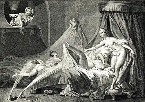 The identification of the pear with the buttocks does not fully capture the range of anatomical and metaphorical connotations often associated with it.[186] In several analyses,[187][188] James Cuno explores the phallic dimension of the pear metaphor, examining its meanings and evolution.[189][190] He suggests that the metaphor may carry both sexual and aggressive undertones, which were evident in the work of contributors to La Caricature. According to Cuno, the metaphor "derives from two fundamental and interconnected impulses—sexual and aggressive, obscene and subversive."[191] However, Alain Vaillant prefers the term "obscenity" to describe the provocative representations of sexuality in art during this period, differentiating it from "pornography," which he reserves for the commercial exploitation of sexuality.[192] In a speech to the Chamber of Deputies on August 4, 1835, defending the reinstatement of censorship, Jean-Charles Persil criticized the proliferation of such "obscene engravings", describing them as degrading to their illustrators.[193][194]