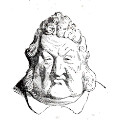 This peculiar comparison took on symbolic proportions, turning it into a true stroke of genius. The pointed end of the pear represented the forehead; Louis-Philippe always had an aversion to heroism and glory. The other end represented the jaw, that is, material appetites. With a single stroke of the pen, his reign was judged.[131]