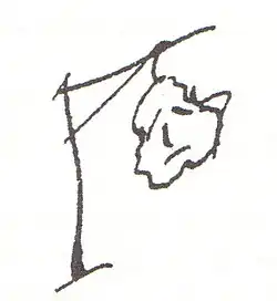 Sandy Petrey considered Baudelaire's analysis as a recognition of the strictly symbolic nature of the pear. He disagreed with authors who believed that the choice of the pear was based on resemblance, such as Sergei Eisenstein, who argued that "the tuft of hair on the forehead and the king's sideburns, when combined, resembled the silhouette of a pear; thus this agreed-upon sign of mockery was born, discovered by Philipon."[125] Petrey took Philipon's argument at face value, viewing the pear as an arbitrary sign that could have been replaced by "a brioche or any bizarre head in which chance or malice placed this unfortunate resemblance."[76][126][N 6]