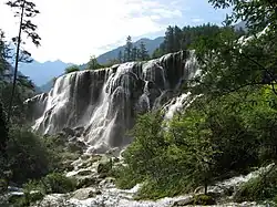 Pearl Shoal Waterfall (Chinese: 珍珠滩瀑布; pinyin: Zhēnzhū tān pùbù) is a waterfall located in Jiuzhaigou, Aba-Ngawa Tibetan and Qiang Autonomous Prefecture in northern Sichuan Province, China. Located at an altitude of 2,433 metres (7,982 ft), the top of the waterfall is 310 metres (1,020 ft) in width. It has a fall of 40 metres (130 ft).[1] The waterfall exists on one of the tributaries of the Bailong River.