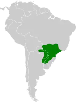 It is found in southern Brazil, Paraguay, northern Uruguay, and northeastern Argentina. Its natural habitat is dry savanna.