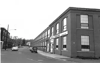 Peck, Stow & Wilcox was founded in 1870 by the merger of three different industrial tool manufacturers specializing in tin-processing equipment. The company grew rapidly, and was by 1890 producing a diversified array of tools. It was also the town's largest employer, its business leadership occupying positions of influence in the town's civic, social, and political spheres. The plant was substantially enlarged in 1912, which is the period when most of the buildings surviving in 1989 were built. By that time, the complex was operated by Ideal Forging.[2] That company went bankrupt in 2003, and the plant was acquired by real estate developers not long afterward. Demolition of the premises took place in 2015, after hazardous materials were removed.[3][4]