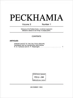 Peckhamia is a peer-reviewed, open-access, scientific journal covering research on jumping spiders.[1][2] It is published by the Peckham Society, an international organization of naturalists and scientists with an interest in jumping spiders, named in honor of George and Elizabeth Peckham. The journal was established in 1977 and its current editor-in-chief is David E. Hill.[2]