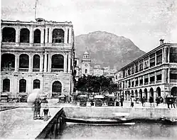 The premises of Hong Kong's two most powerful trading hongs at the time, Dent & Co. and Jardine, Matheson & Co.,[2] were located on The Praya Central, Victoria's original waterfront, on the opposite sides of Pedder Street. Dent & Co., one of the key founding members of The Hongkong and Shanghai Banking Corporation Limited,[3] had a sprawling complex which stretched along the Praya, and a west wing which abutted Pedder Street.
