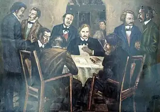 From the beginning of the sessions of the Popular Board, in which Pina served as secretary and Ponthieux as president, the national status of the Dominicans was raised. This caused confrontation between the Dominican liberals and the Haitians. Thanks to his oratory skills, Pina took the lead in the organization's sessions, in defense of the national rights of Dominicans. He directed his arguments against those of Jean Baptiste Morin, the other Haitian who belonged to the organization. After one of the exchanges of disagreements, Auguste Brouat concluded that everything was lost for Haiti, since the breakup of the Dominicans was looming closer.[6]